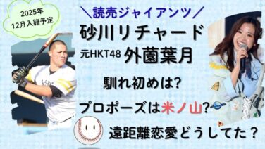 プロ・メジャー 画像|外薗葉月と砂川リチャードの馴れ初めは?米ノ山でプロポーズ? 2025年11月結婚発表した砂川リチャード選手と外薗葉月さんの馴れ初め、米ノ山での告白・プロポーズ、遠距離恋愛の秘話まで時系列で詳しく紹介します。 2025.11.29 プロ・メジャー