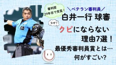 プロ・メジャー 2025|白井球審はなぜクビにならない理由7選!処分はされてる? なぜ白井球審はクビにならないのか?理由を7選にまとめました。トラブル後の処分は非公開なのか?実際の評判、現場からの評価など、最優秀審判賞の背景までわかりやすく解説します。 2025.11.24 プロ・メジャー