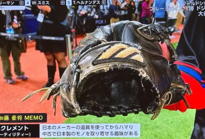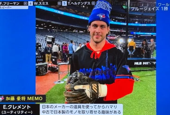加藤氏によると、ブルージェイズのアーニー・クレメント内野手(29)が愛用するグラブは日本製。クレメント自身が中古で取り寄せ、150ドル(現在の日本円で約2万3000円)で購入したという。