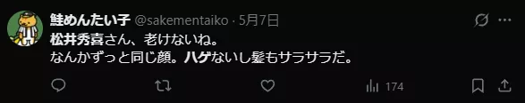 ただ、松井秀喜さんは、白髪が増えても、顔が変わらず、とても若々しく感じられます。