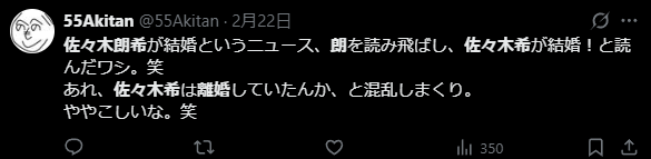 本来「佐々木希」と書くべきところを誤って“朗”を入れてしまったようです。