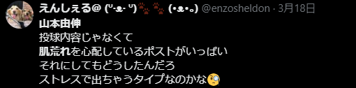山本由伸投手の肌荒れは、“ストレス”が原因ではないかと思われる人が多いようです。